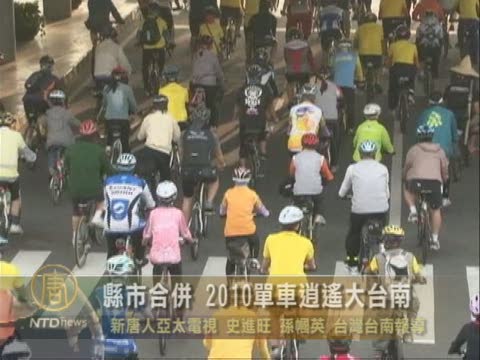 【新唐人2010年11月7日訊】趕在五都合併前,騎乘自行車活動率先進行縣市合併規劃,看到的是在6日舉行的「2010單車逍遙大臺南」,今年的活動路線跨越臺南市及臺南縣,全長53公里,吸引了5000多人參加。