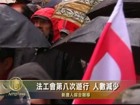 【新唐人2010年11月7日訊】11月6號星期六,法國民眾再次走上巴黎街頭,對國會通過的推遲退休年齡計劃進行抗議遊行。這是民眾的第8次遊行,和此前的遊行相比,參加人數已經減少。