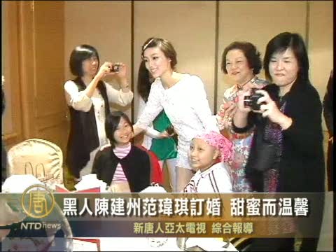 【新唐人2010年11月7日訊】「黑人」陳建州與「範範」範瑋琪愛情長跑10年,6日低調在飯店舉行簡單而溫馨的訂婚儀式。儀式只請了雙方家屬和唱片公司人員,席開4桌。由於黑人的父親十多年前就已經多世,現在要開口叫準岳父「爸爸」,讓他的心情難掩激動。
