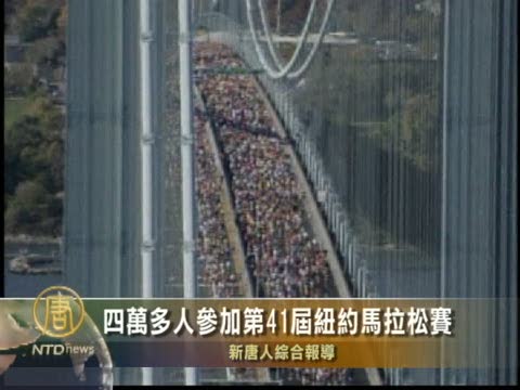 【新唐人2010年11月8日訊】11月7號星期日, 第41屆紐約城市馬拉松比賽吸引了4萬3千名選手以及眾多圍觀民眾。賽前, 志願者門進行了充分的準備,以保障道路暢通以及各個水站供給充足。在全程馬拉松賽上,埃塞俄比亞的葛布裡馬利姆最終贏得男子冠軍,肯尼亞的基普拉加特贏得女子冠軍。