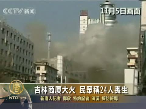 【新唐人2010年11月8日訊】中國吉林省吉林市最大綜合商場,5號上午遭遇祝融之災,火勢持續燃燒了12個小時才被撲滅;吉林市政府6號發佈消息稱,大火造成19死、24住院、3人留院觀察。不過,有民眾向本臺記者透露,死了24人。