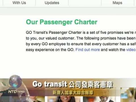 【新唐人2010年11月9日訊】連接多倫多和周邊城市的Go transit公司今天發表乘客憲章說要增加顧客的滿意度。