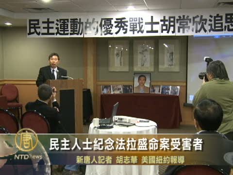 【新唐人2010年11月10日訊】中國民主運動人士今天(11月9日)下午在法拉盛喜來登酒店,紀念法拉盛命案受害者胡常忻,並向他的親屬頒獎。請看報導。