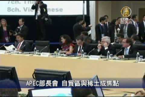 【新唐人亞太台2010年11月11日訊】為期兩天的亞太經合作(APEC)部長會議10日在日本神奈川縣橫濱市召開。由於中國禁止對日本出口稀土是這次會談的焦點議題之一。 一般認為,Apec的共同聲明中,雖沒有直接點名中共,但還是將資源和糧食等出口限制列入貿易保護的範圍,遏止類似的保護主義發生。