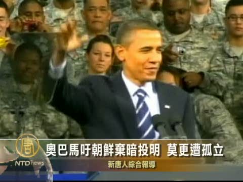 奥巴馬吁朝鮮棄暗投明 莫更遭孤立