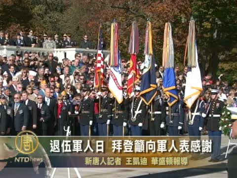 【新唐人2010年11月12日訊】11月11日是美國退伍軍人紀念日(Veterans Day)。美國副總統拜登出席了在首都華盛頓郊外阿靈頓國家公墓舉行的紀念活動。他在講話中談到了伊拉克戰爭和阿富汗戰爭, 並呼籲民眾向為國效力的軍人們表示感謝。