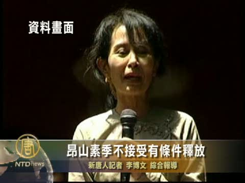 【新唐人2010年11月12日訊】緬甸民主領袖翁山蘇姬的律師表示,翁山蘇姬被拘留的期限將在這個星期屆滿,但是她不會接受有條件的釋放。