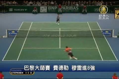 【新唐人亞太台2010年11月12日訊】11月11日,巴黎網球大師賽繼續第3輪的爭奪,結果賽會頭號種子費德勒和三號種子穆雷各自擊敗對手,闖進8強。