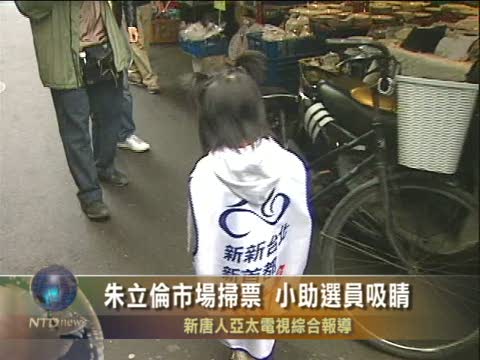 小小助選員:一號朱立倫,一號朱立倫,拜託,拜託, 稚氣的聲音,喊著要大家支持朱立倫,這位五歲的小女娃,走在拜票隊伍最前面,立刻吸引民眾的目光,不過被問起朱立倫要選甚麼,小小助選員可就漏氣了。