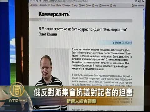 【新唐人2010年11月15日訊】俄羅斯兩百多名反對派人士,11月14號(星期天)在莫斯科舉行抗議集會,指責記者和環保人士遭受不明攻擊,聲援日前被襲擊的記者。