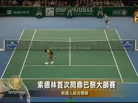 【新唐人2010年11月15日訊】在星期天(11月14日)巴黎網球大師賽決賽的爭奪中,瑞典的索德林以2-0橫掃法國選