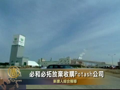 【新唐人2010年11月15日訊】全球最大的礦業企業必和必拓公司11月15日宣佈,由於加拿大政府的反對,該公司將放棄400億美元收購鉀肥生產商Potash公司的計劃。