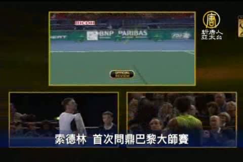 【新唐人亞太台2010年11月15日訊】在星期天(14日)巴黎網球大師賽決賽的爭奪中,瑞典的索德林以2-0橫掃法國選手蒙菲爾斯,首次贏得大師系列賽桂冠。