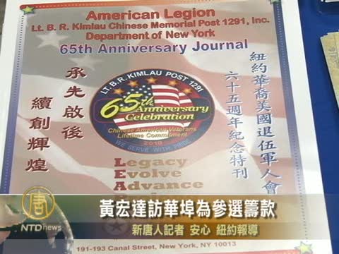 【新唐人2010年11月16日訊】曾任美國退伍軍人會全國副主席的黃宏達11月15日來到紐約華埠,表達自己參選全美退伍軍人會主席一職的心願,希望得到華人社區的支持。請看報導。