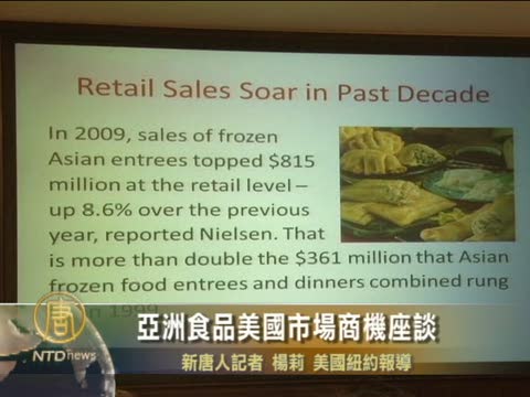【新唐人2010年11月17日訊】中華民國對外貿易發展協會駐紐約辦事處11月16日上午在經文處舉辦了“亞洲食品美國市場商機”圓桌會議,邀請在美從事亞洲食品交易的公司一同探討發展亞洲食品美國市場商機。