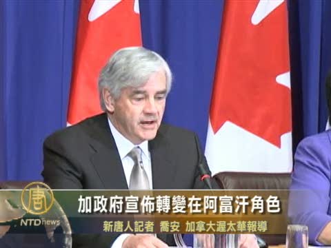 【新唐人2010年11月17日訊】今天,外交部長坎農,國防部長麥凱及國際間合作部長小田在外交部聯合舉辦新聞發佈會,明確宣佈加拿大政府在阿富汗的角色將由軍事作戰轉變為軍隊培訓及社會援助,請看本臺發自渥太華的報導。