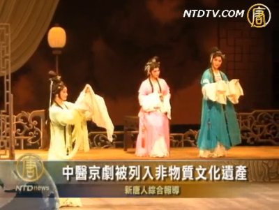 【新唐人2010年11月17日訊】聯合國教科文組織保護非物質文化遺產政府間委員會,16號審議通過,來自11個國家的46項遺產將列入教科文組織的人類非物質文化遺產名錄。其中包括中國的中醫針灸和京劇。