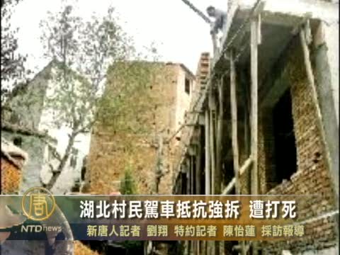 【新唐人2010年11月18日訊】中國湖北武漢市當局,16號出動兩千多名拆遷人員,進入黃陂區後湖村進行強拆,結果當天下午遭遇村民龔澤林開車反抗,撞傷12名拆遷人員,龔澤林則被武警、公安、城管組成的拆遷大隊,打成重傷,死在醫院。