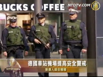 【新唐人2010年11月18日訊】星期四(11月18日),德國警方持續在車站和機場警戒,加強保安。警方透露,非洲國家納米比亞警察在一架準備從納米比亞首都溫得和克飛往德國首都柏林的航班上發現一件可疑行李。而此前一天,德國內政部長已宣佈提高保安等級。