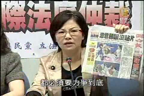 【新唐人亞太台2010年11月19日訊】楊淑君失格風暴,持續延燒立法院,星期五上午,國民黨立委要求體委會應該據理力爭到底,體委會副主委陳士魁則是強調,在檢視過比賽影片之後,確定楊淑君在比賽前,已經拿下電子貼片,呼籲世跆盟跟亞跆盟別做背離事實的指控。來看星期五上午立法院的情形。