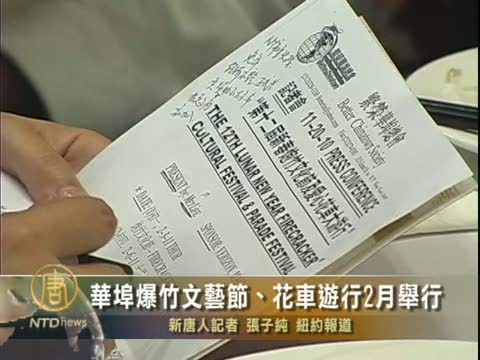 【新唐人2010年11月21日訊】紐約繁榮華埠總會(Better Chinatown Society),今天(11月20日)在金豐大酒樓宣佈,明年2月將舉辦新年的傳統節慶項目「新春爆竹文藝節」和「愛心花車大遊行」活動,希望社區團體踴躍參加,請看報導。