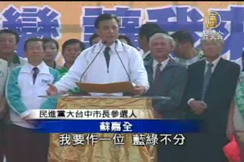 民進黨大台中市長參選人 蘇嘉全:「我要作一位藍綠不分,不分黨派只要是人才,我們一起重用,請將大台中交給嘉全,我ㄧ定作一位,新好市長好不好。」