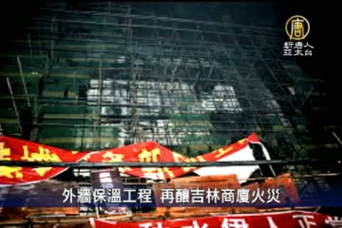 【新唐人亞太台2010年11月21日訊】繼上海大火之後,中國又發生一起因為保溫節能工程而發生的火災。11月20號,吉林白山市正在進行外牆保溫作業的新華商廈,竄出火苗,接著大火從一樓外牆燃起後迅速蔓延,最後9台消防車用一個小時將火撲滅,所幸沒有人員傷亡。