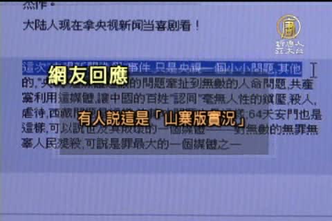 大陸網民 陳先生:「我們以往廣東這一邊,很少看中央電視台,都跟我們接觸的新聞根本都不一樣,因為我們可以翻牆,因為看到外面,它們的新聞根本都胡說八道。」