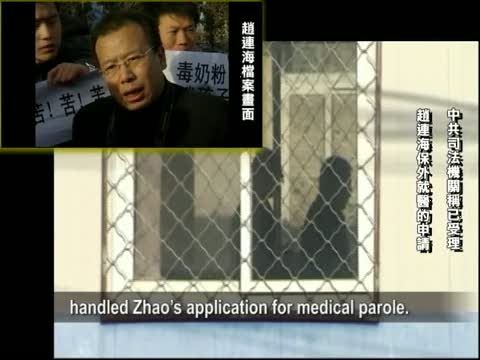 【新唐人2010年11月25日訊】中國毒奶粉受害者家長趙連海,被中共當局判處有期徒刑兩年六個月後,在22號解聘律師,表示他已經放棄了對判決的上訴計劃。不過,23號傳出司法機關已受理趙連海“保外就醫”的申請。相關人士表示,從沒聽說趙連海患有疾病,因此質疑他是迫於壓力,“被”放棄上訴,而“被”保外就醫。