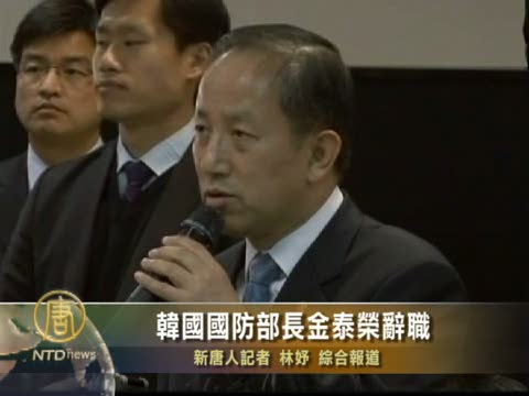 【新唐人2010年11月26日訊】在延坪島炮擊事件發生兩天之後,韓國國防部長金泰榮星期四決定辭職,韓國總統李明博已經接受了他的辭呈。