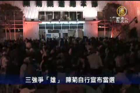 【新唐人亞太台2010年11月27日訊】來看到高雄市長的部分,民進黨陳菊一路保持領先,她也在剛才自行宣布當選。陳菊的票數大幅超過對手楊秋興和國民黨黃昭順兩人的得票總和。尤其是在919水災時淹水嚴重的本和里,依然保持領先,讓陳菊陣營吃了一顆定心丸。顯然棄保效應在這次高雄選戰並沒有起到影響作用。