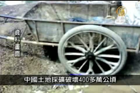 中國因採礦破壞的土地面積達400多萬公頃,最近幾年損毀土地面積仍以每年20萬公頃的速度遞增。據了解,長期以來,中國形成了大量的工礦廢棄地,近30年來,中國處於工業化、城鎮化快速發展時期,工礦廢棄地數量大量增加,但大多數未得到及時復墾利用。