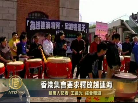 星期六下午,大約100名香港市民在尖沙嘴集會,要求釋放被判刑的的趙連海,這次集會由香港教育專業人員協會發起,他們敲打鑼鼓 ,吹響哨子,提請路人關注這一冤案。