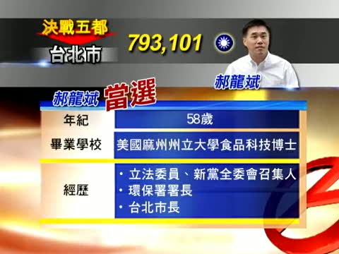 臺北市長當選人為國民黨的郝龍斌,今年58歲,美國麻州州立大學食品科技博士,曾經擔任過臺大教授,環保署長以及臺北市長。