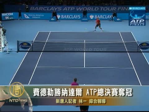 【新唐人2010年11月29日訊】當地時間11月28號,2010年ATP網球年終總決賽在倫敦O2體育場開賽。在男單決賽中,目前排名第二的瑞士選手費德勒以6比3,3比6和6比1戰勝了排名第一的西班牙選手納達爾,第五次加冕總決賽冠軍。