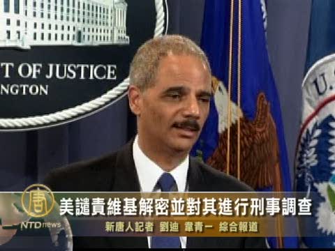 【新唐人2010年11月30日訊】星期一(11月29日),美國國務卿希拉里•克林頓和司法部長埃里克•霍爾德都對維基解密泄密事件提出強烈譴責。霍爾德還表示,正在對維基解密(WikiLeaks)此次事件進行密集調查。任何觸犯法律的人,將需要承擔責任。
