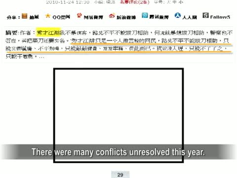 【新唐人2010年12月1日訊】中國大陸官民、警民衝突越來越多,在專制壓力之下,許多民眾習慣通過互聯網抒發情緒表達不滿。最近,一篇總結今年度網民“十大不了了之抗議事件”的網文,被大陸各大網站轉載,引起網友的共鳴。
