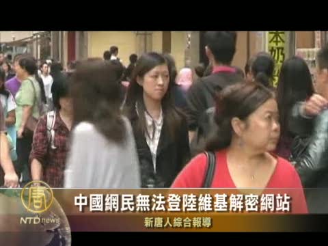 【新唐人2010年12月2日訊】維基解密網站這個星期吸引了數百萬的訪問者,但中國的網民星期三反映,他們無法登陸這個網站。