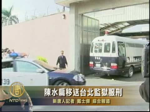 【新唐人2010年12月2日訊】中華民國前總統陳水扁星期四被移送臺北監獄服刑,他因貪污罪嫌上個月被判19年有期徒刑。