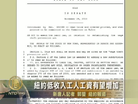 【新唐人2010年12月3日訊】紐約州眾議院在週二通過了一項提高紐約低收入工人最低工資標準的法案。來看相關報導。
