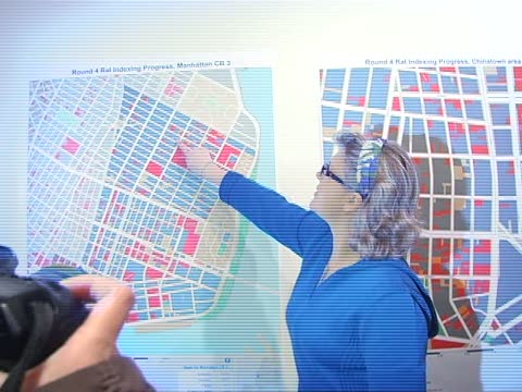 滅鼠講座在華埠中華公所禮堂舉行, 牆上懸掛的這兩張圖表灰色的表示無鼠害,紅