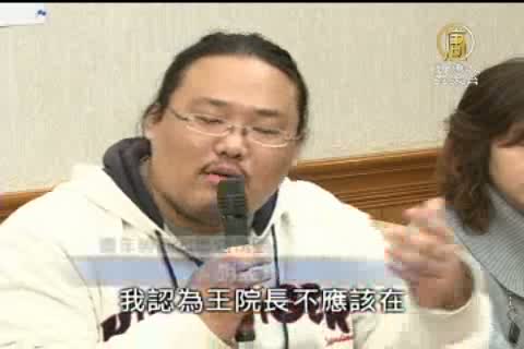 【新唐人亞太台2010年12月3日訊】監察院長王建(火宣)在演講場合中,脫口說出「大學生打工笨死了」的言論,引起輿論譁然;社運團體認為,王建(火宣)將學生打工的目的定義成是為了滿足個人物欲,卻不去談整體社會環境、家庭經濟狀況的結構因素,是以偏蓋全;認為王建(火宣)的發言失當,要求他道歉。