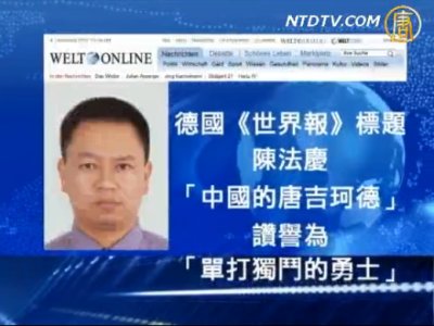 德國《世界報》以「中國的唐吉珂德」為題,讚譽陳法慶為「單打獨鬥的勇士」。