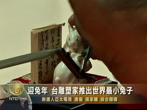 【新唐人2010年12月5日訊】一般說來,人們對兔子的印象就是小巧可愛,為了迎接明年兔年的到來,台灣毫芒彫刻家陳逢顯老師展出,號稱世界最小的兔子藝術品。這次展出的兔子可是比針孔還小呢!