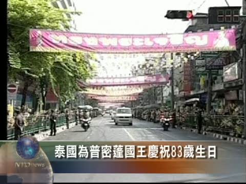 【新唐人2010年12月6日訊】星期天(12月5日),泰國舉國為國王普密蓬慶祝83歲生日。車隊載著普密蓬國瓦王、詩麗吉王后以及其他王室成員駛離國王一直養病的詩利拉吉醫院前往大王宮(Grand Palace),沿途民眾揮舞旗幟向國王致敬。晚上還有煙花慶典。