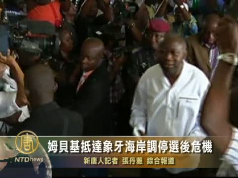 【新唐人2010年12月6日訊】南非前總統姆貝基受非洲聯盟委託,星期天(12月5日)抵達像牙海岸試圖調停那裏大選後的政治危機。