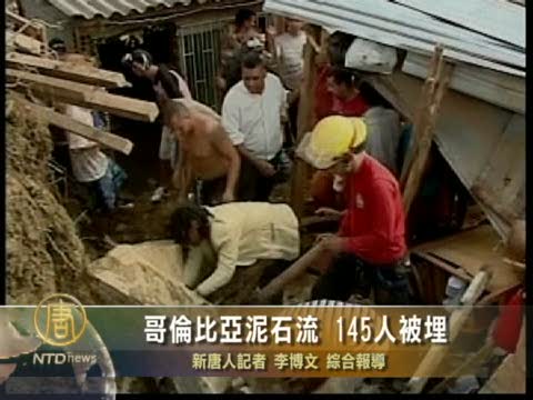【新唐人2010年12月6日訊】12月5日,哥倫比亞第二大城市麥德林市郊外的貝約鎮發生嚴重的泥石流災害,目前已造成2人死亡、7人受傷,另有145人被掩埋。