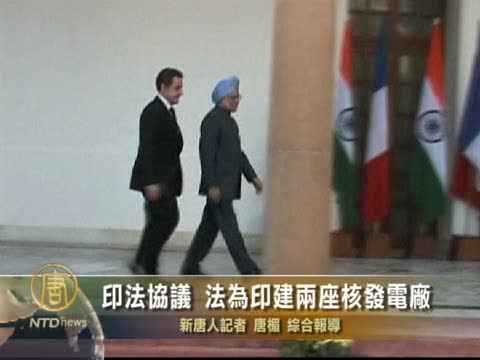 【新唐人2010年12月7日訊】印度總理辛格(Manmohan Singh)與到訪的法國總統薩爾科齊(Nicolas Sarkozy)星期一(十二月六日)在新德里共同宣佈,兩國簽署了核能協議,法國將為印度興建2座核發電廠。