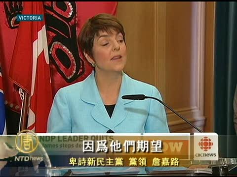 【新唐人2010年12月7日訊】卑詩省政壇再起波瀾。省新民主黨黨領詹嘉路(Carole James)今天上午突然宣佈辭職,她說只有這樣,才能避免黨內進一步的分裂。