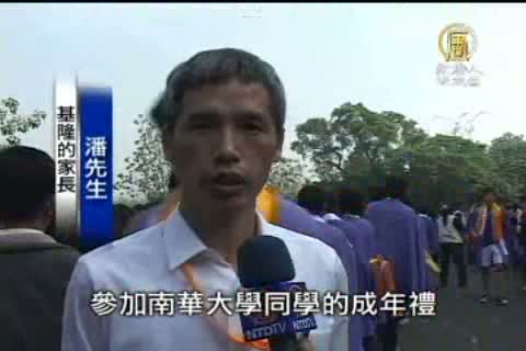 【新唐人亞太台2010年12月7日訊】嘉義南華大學注重品德教育,特別辦理學生成年禮活動,藉由學生的祈願,家長的期待,師長的祝福,引導學生走向完美的人生願景。